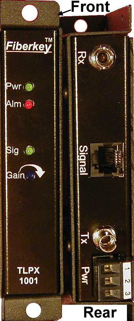 TLLX-1001 receiver. Both units provide a fiber optic interface between a
